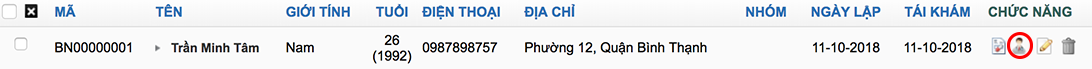 Để tiến hành kê toa thuốc cho một bệnh nhân, bác sĩ nhấp vào nút kê toa ở dòng của bệnh nhân tương ứng