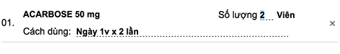 Gõ tên thuốc vào ô chọn thuốc, các thuốc có tên tương ứng sẽ lần lượt hiện ra để tùy chọn. Chọn thuốc bằng cách di chuyển mũi tên lên xuống và nhấn enter