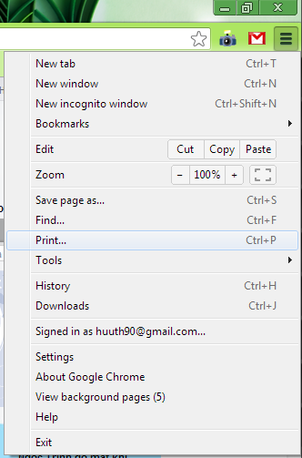 Đối với trình duyệt Chrome: Trên thanh Menu của trình duyệt, bạn vào menu chọn "Print...".